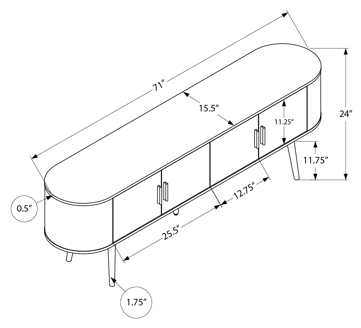 Rendez-vous votre salon avec notre meuble télé élégant et tendance! Conçu avec des pieds en bois noir solides et une structure robuste, ce console de 72 pouces offre une finition laminée noire lisse sur le dessus facile à nettoyer et une finition en noyer sur les 4 portes du cabinet avec des poignées noires. Avec ses compartiments spacieux et deux trous de gestion de câbles, gardez votre salon organisé et sans fils disgracieux. Les côtés courbés apportent une touche contemporaine et rétro à ce meuble, en faisant un ajout parfait à votre chambre ou salon. Non seulement élégant, mais également conçu pour durer.
