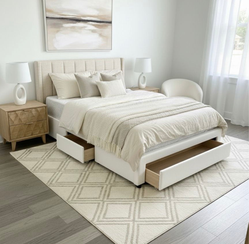 Le lit Niki allie design épuré et fonctionnalité pour s’intégrer harmonieusement dans toutes les chambres. Sa finition blanc crème apporte une touche douce et lumineuse, idéale pour créer une ambiance chaleureuse et apaisante.