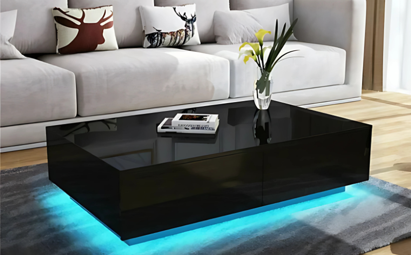 Décorez votre salon avec cette table basse moderne qui offre 16 couleurs de lumière LED changeables avec une télécommande. Jouez avec l'intensité de la lumière et les différentes fonctionnalités pour une ambiance agréable à la maison ! Elle s'harmonise facilement avec n'importe quel style de mobilier dans votre maison. Avec 4 tiroirs, elle vous offre suffisamment d'espace pour ranger toutes sortes d'objets ménagers. Fabriquée en MDF de haute qualité et dotée de solides pieds de table porteurs de charge, cette table basse est résistante et peut supporter un poids pouvant aller jusqu'à 200 livres. Avec son fini haut de gamme, la table allie élégance en apparence et utilité pratique, elle est facile à nettoyer et à entretenir au quotidien.